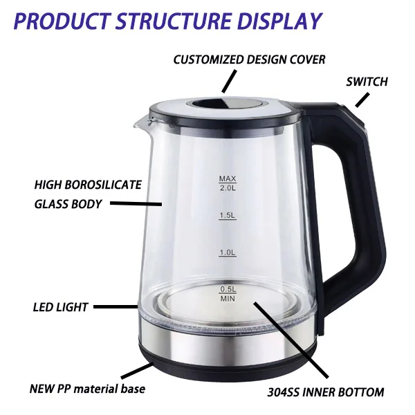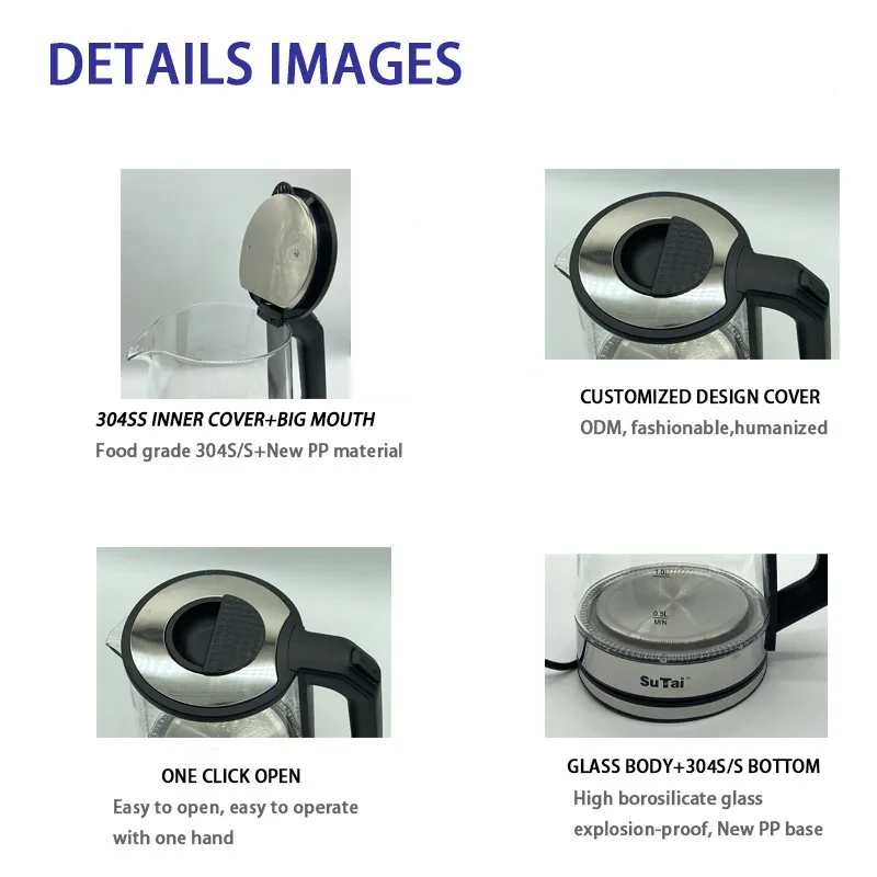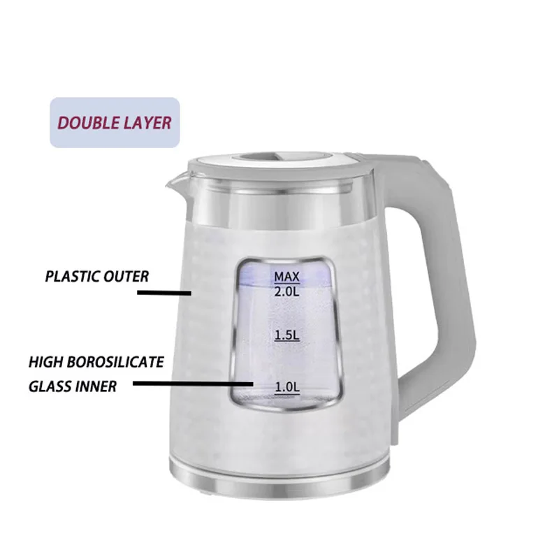 Hot Sale Glass Layer Multi Color Option Tea Water Kettle With PP Plastic and 201/304 Stainless Steel
